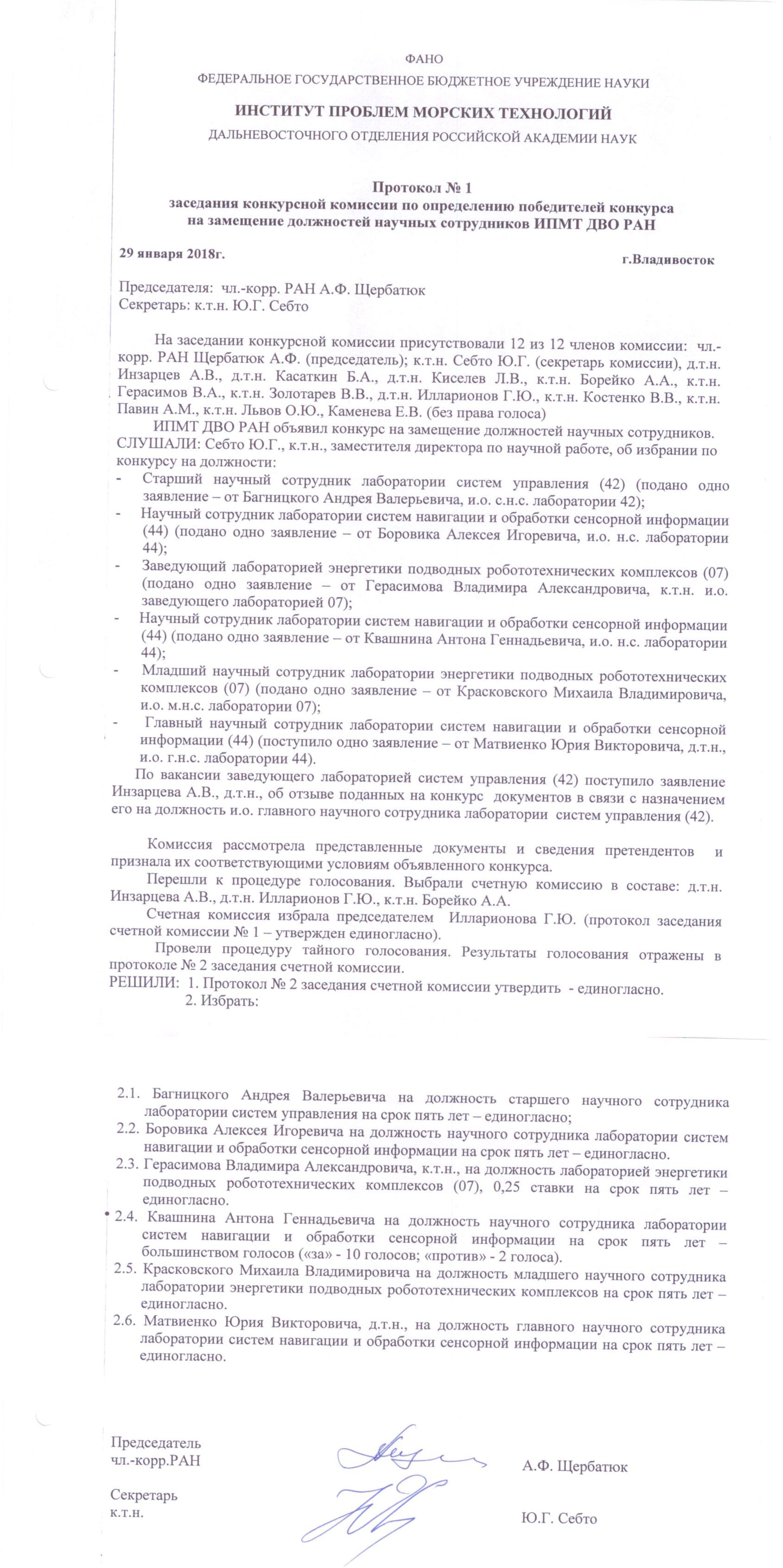 заседания конкурсной комиссии по определению победителей конкурса на замещение должностей научных сотрудников ИПМТ ДВО РАН