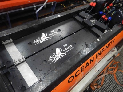 АППА типа Kongsberg Hugin, эксплуатируемые Ocean Infinity, оснащаются батареями Kraken SeaPower, компенсированными по давлению за счет силиконового геля. Энергоемкости в 80 кВт*ч хватает на 100 ч работы всех приборов полезной нагрузки (SSS/SBP/MBES) и 700 км выбега. Kraken Power - дочерняя структура канадской корпорации Kraken Robotics была преобразована из германской компании ENISEA (ENITECH SUBSEA) в 2017 г.