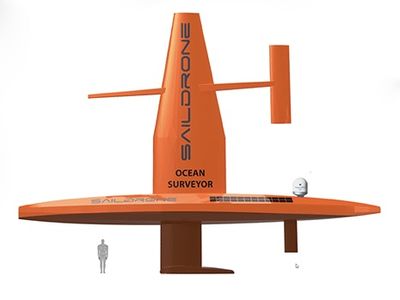 Компания Saildrone приступила к морским испытаниям своего первого безэкипажного парусника класса Surveyor, длина которого 22 м, а мачта высотой 15 м. Около сотни парусных дронов меньшего размера (длина ~ 7,5 м) называются Explorer и эксплуатируются компанией в формате "data-as-a-service", начав научные рейсы в 2015 г. Surveyor предназначен для несения МЛЭ Kongsberg EM 2040 и/или EM 304 и предполагается, что сможет делать батиметрическую съемку на глубинах до 7 км с производительностью ~ 1,6 млн. кв. км в год.