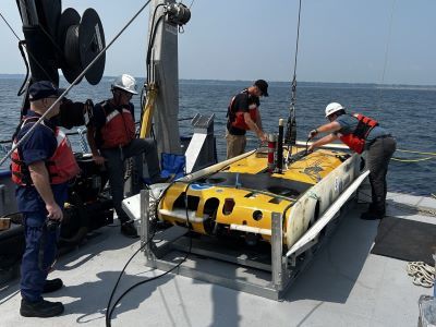 NOAA на своем судне R/V Laurentian (24 м) проводит недельную экспедицию в заповеднике Wisconsin Shipwreck Coast National Sanctuary на озере Мичиган. Целью работ является обследование 15 затонувших судов на глубинах 40 – 150 м, включая фотосъемки с высоким разрешением для создания детализированных 3D-моделей. Для этого компания Hibbard Inshore предоставила АНПА типа Saab Sabertooth, который оснащен лазерным сканером Voyis Insight Pro и фотокамерой Observer. Кроме того, на борту находится вспомогательный ТНПА типа Seaeye Falcon.